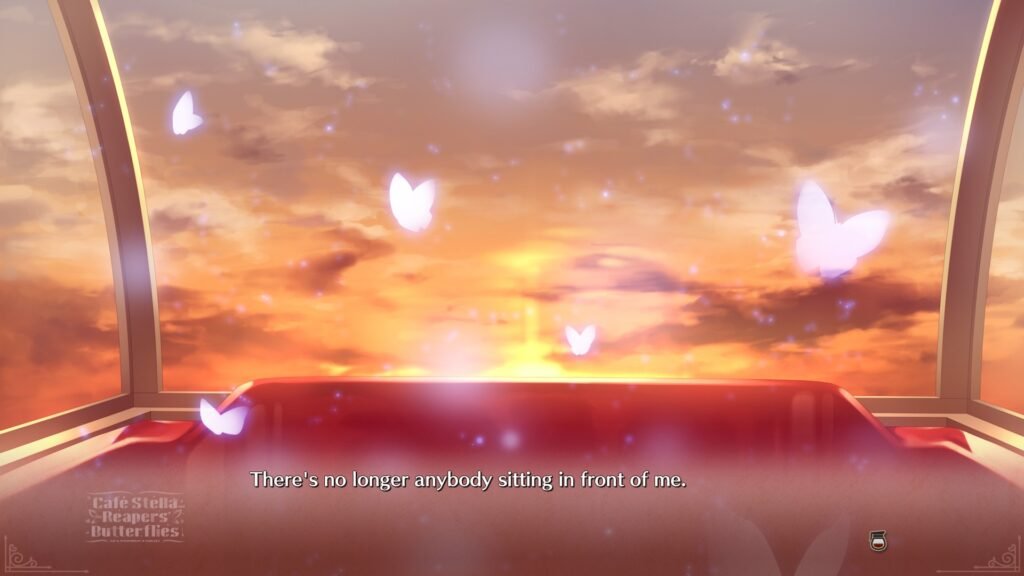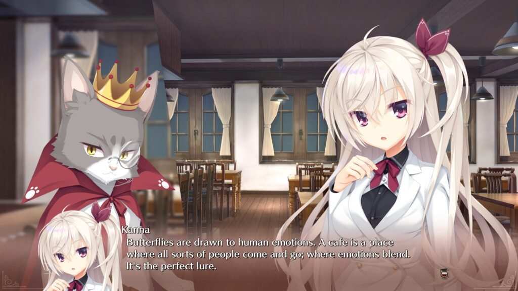 So ist das Setting gesetzt: Ein Café-Alltag gemischt mit einem übernatürlichen Auftrag, mit Zeitschleifen, Schmetterlingen der Seelen und einer Prise Romantik. Das ungewöhnliche Konzept (Tod + Café) hebt sich von vielen anderen Visual Novels ab