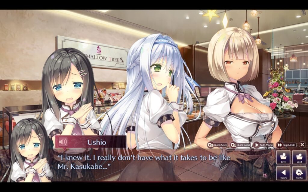 Statt schnell eine Romance in Gang zu setzen, lädt es dich ein, dich in diese kleine Gemeinschaft einzugewöhnen, die Kunden kennenzulernen und die Eigenheiten der vier Heldinnen in Alltagssituationen zu erleben.