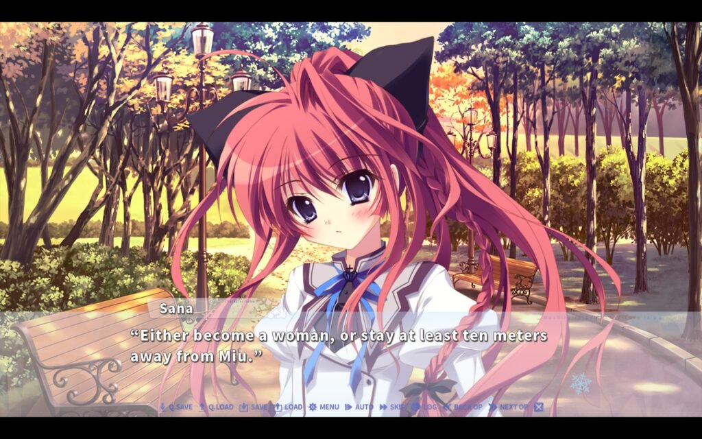 Nicht nur, dass wir in Sanas Route praktisch das gleiche erleben, wie in der Miu Route, finde ich Sanas Tsundere Charakter einfach nur anstrengend.