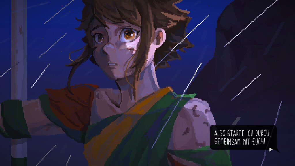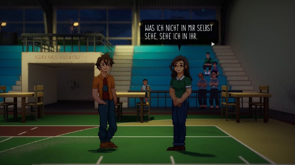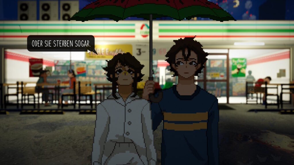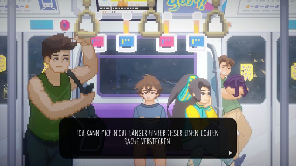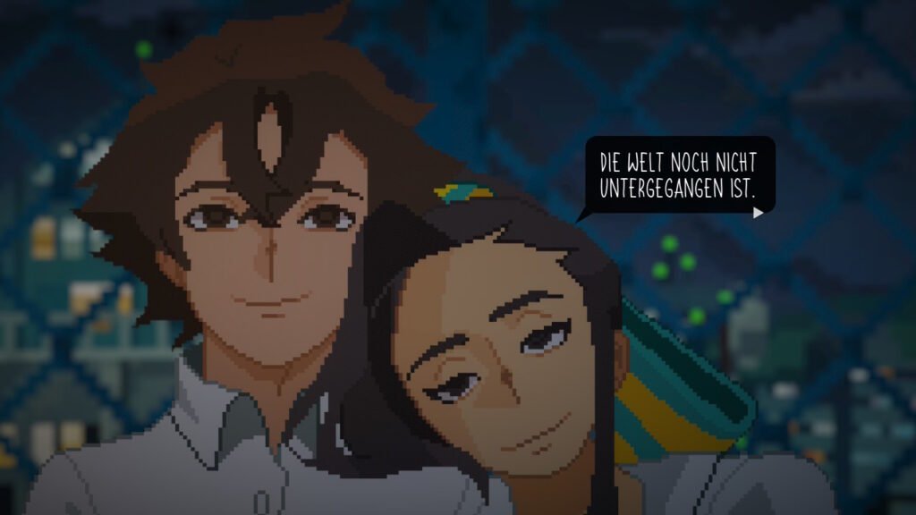 Die Pixelgrafik von Until Then ist detailverliebt und atmosphärisch. Regen, Lichtreflexionen, überfüllte Straßen und stille Innenräume erzeugen eine melancholische Stimmung, ohne je erdrückend zu wirken. Die Animationen sind subtil: ein Zögern im Schritt, ein gesenkter Blick, ein kurzes Innehalten.
