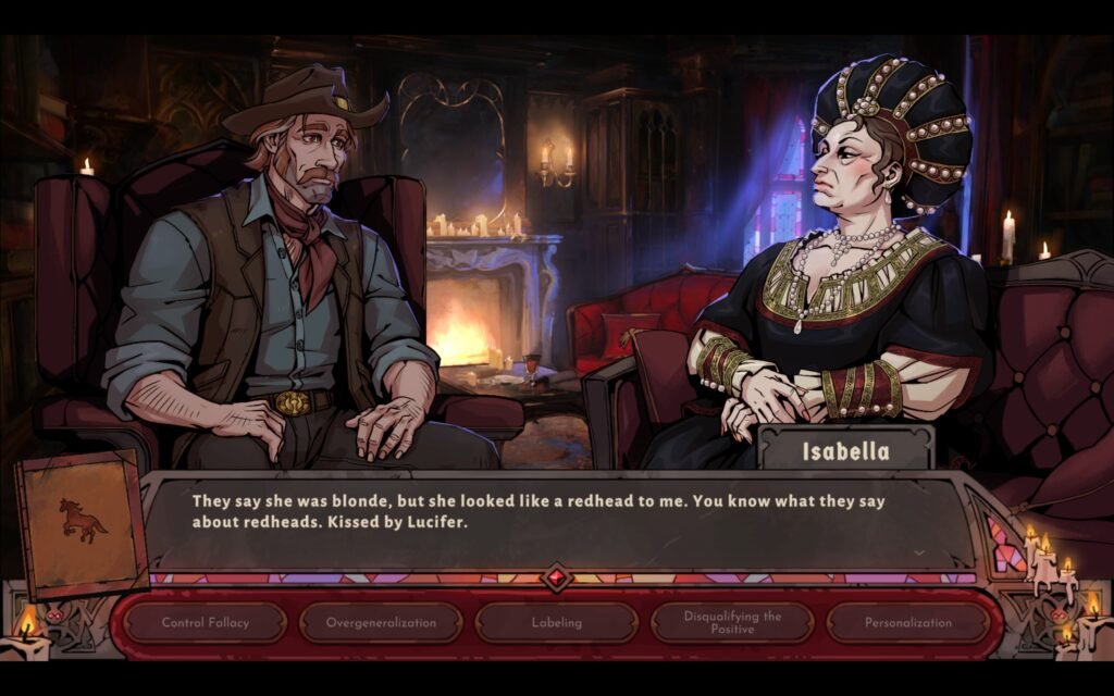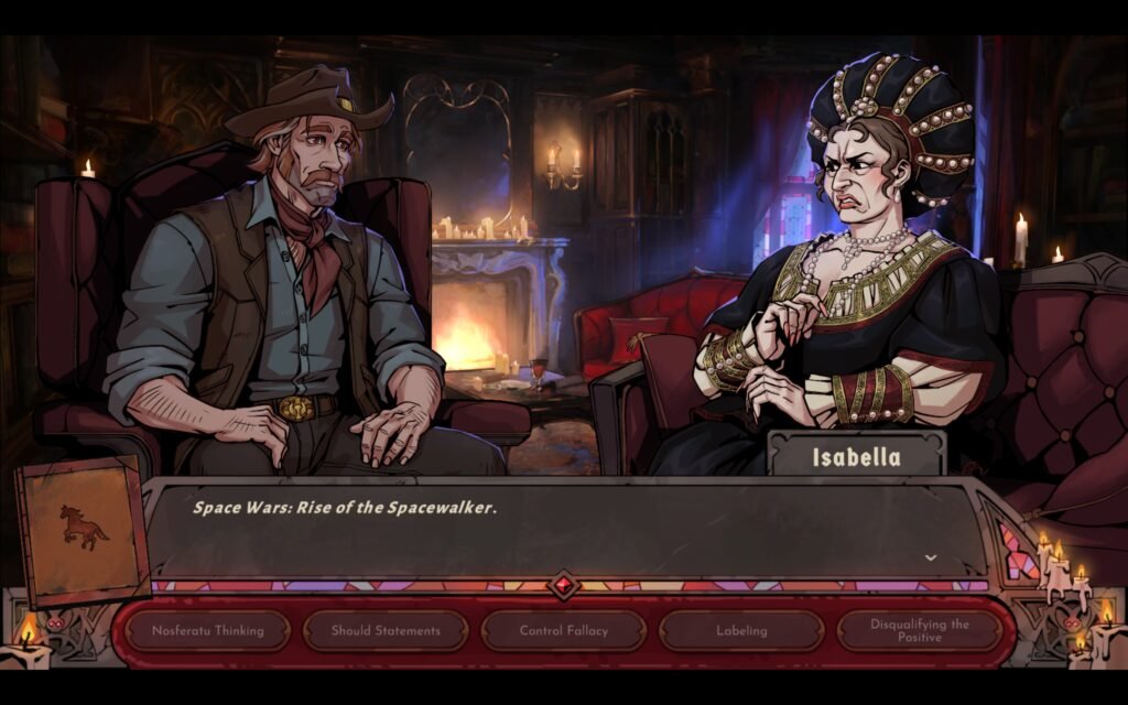 Spieler analysieren die Gedanken ihrer Klienten – darunter exzentrische Charaktere wie ein Shakespeare-Darsteller und ein italienischer Aristokrat – und erkennen „kognitive Verzerrungen“.